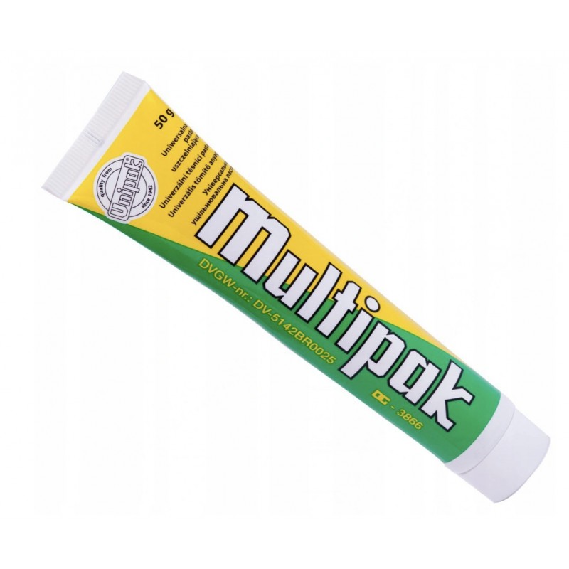 Pasta uszczelniająca Multipak 50g to produkt dedykowany skutecznemu uszczelnianiu metalowych gwintów rurowych w instalacjach ciepłej i zimnej wody pitnej, gazowych oraz centralnego ogrzewania. Zastosowanie najnowszej technologii sprawia, że pasta jest niezastąpionym narzędziem dla specjalistów branży instalacyjnej.