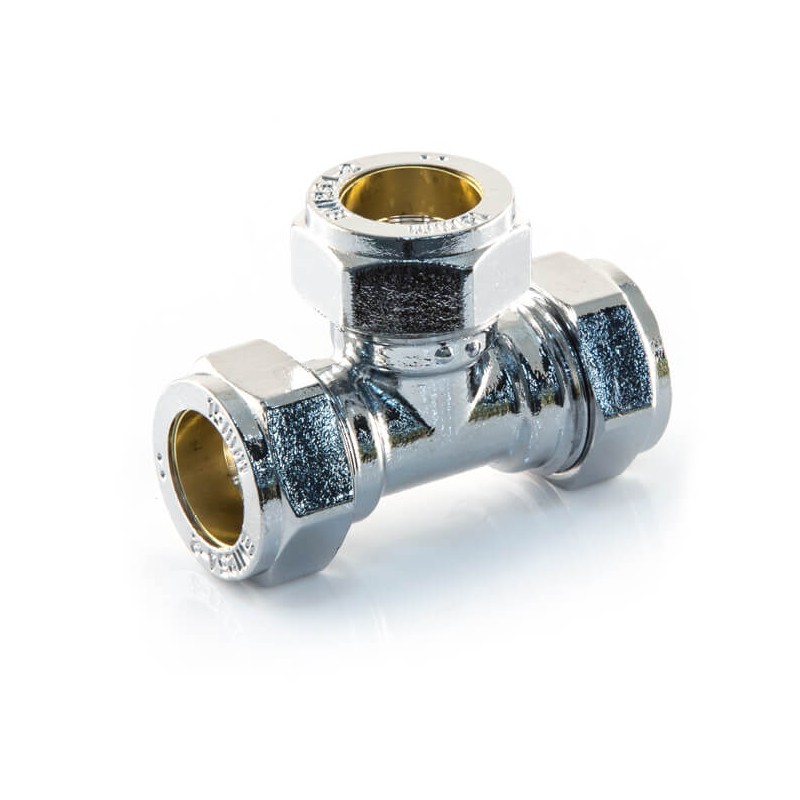Trójnik conex chrom 15 mm to produkt z rodziny elementów instalacyjnych stosowanych w systemach wodno-kanalizacyjnych. Jest to trójnik narożny o wymiarze 15mm, wykonany z chromowanej stali nierdzewnej.