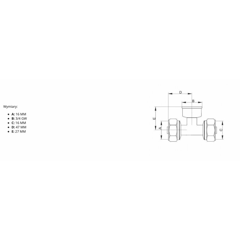 Pex trójnik 16x3/4x16 mm gw to produkt stosowany w instalacjach wodno-kanalizacyjnych. Trójkątny kształt tego elementu zawiera trzy wejścia o wymiarze 16 mm i jeden wyjście o wymiarze 3/4 cala, również o wymiarze 16 mm.