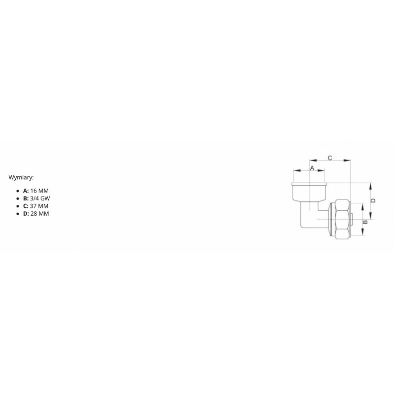 Wymiary tego kolana to 16 mm średnicy i 3/4 cala gwintu. Dzięki temu produktowi możliwe jest elastyczne łączenie rur wodnych i kanalizacyjnych pod różnymi kątami, co umożliwia łatwe i szybkie wykonanie instalacji.