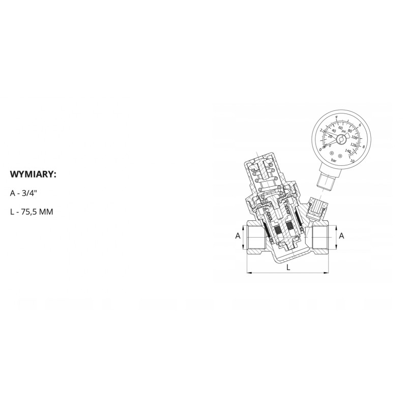 REDUKTOR CIŚNIENIA WODY Z CIŚNIENIOMIERZEM 3/4