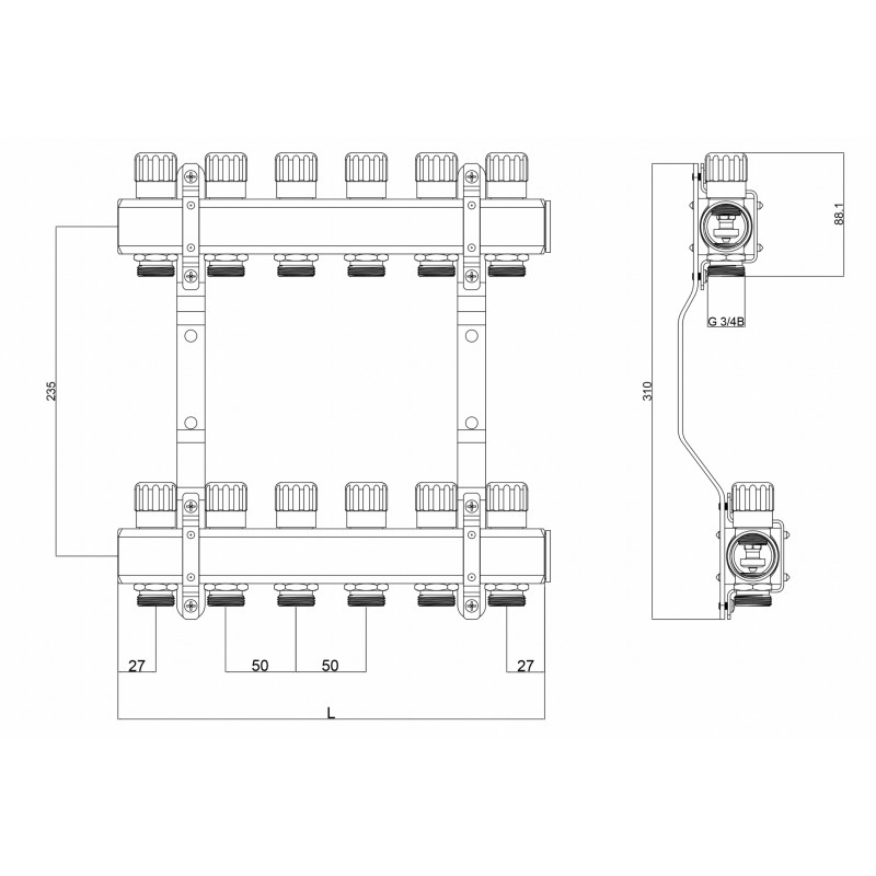 Zestaw rozdzielacza z mosiądzu to kompleksowe rozwiązanie stworzone z myślą o instalacjach centralnego ogrzewania w budynkach. Składa się on z solidnych łączników instalacyjnych o średnicy DN 25, precyzyjnych zaworów regulacyjnych C.O. o kalibracji DN 15-K oraz praktycznych uchwytów montażowych.