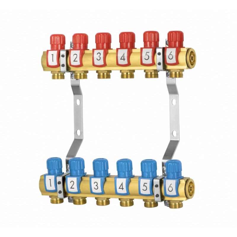 Mosiężny rozdzielacz gwarantuje trwałość i niezawodność w użytkowaniu. Jego konstrukcja oparta na mosiądzu, odpornym na korozję, sprawia, że rozdzielacz utrzymuje wysoką jakość przez długi okres czasu. Zastosowane zawory regulacyjne umożliwiają precyzyjną kontrolę przepływu ciepłej wody w poszczególnych obwodach, co jest kluczowe dla efektywnej regulacji temperatury w pomieszczeniach.