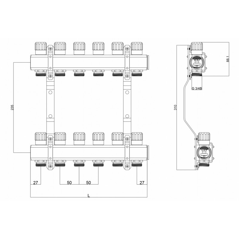 ROZDZIELACZ Z ZAWORAMI REGULUJĄCYMI 8 OBWODÓW