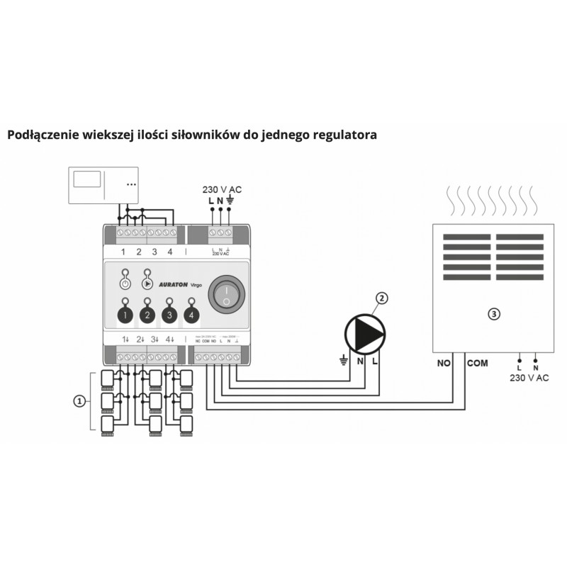 AURATON TAURUS CONTROL STRIP przeznaczony jest do montażu w szafkach instalacyjnych. Umożliwia jednoczesne sterowanie pracą pompy c.o. i urządzenia grzewczego. AURATON Taurus współpracuje z przewodowymi regulatorami temperatury. Dzięki temu daje wygodną i bezpieczną regulację ogrzewania podłogowego. Głównymi zaletami stosowania AURATON TAURUS CONTROL STRIP są: wygoda, komfort i bezpieczeństwo. Dzięki prostej budowie siłownik charakteryzuje się szybkim i łatwym montażem. W skład zestawu wchodzą: listwa sterująca, instrukcja obsługi oraz szablon montażowy.