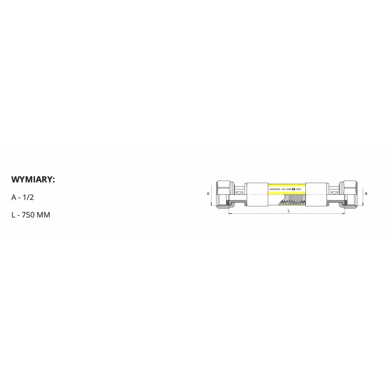 Przewód przyłączeniowy DIAMOND Flex DN 12 o długości 750 mm to profesjonalne rozwiązanie, które umożliwia bezpieczne i elastyczne przyłączanie urządzeń domowych do instalacji gazowej w budynkach zasilanych gazem naturalnym o ciśnieniu do 0,5 bara. Wykonany z wysokiej jakości stali nierdzewnej, wąż DIAMOND Flex łączy w sobie solidność, trwałość i niezawodność.