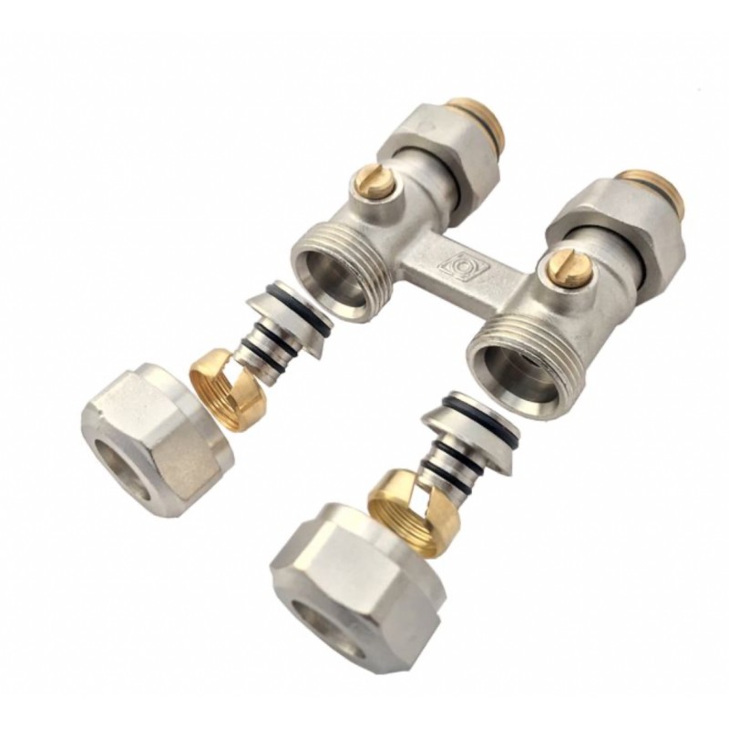 Zawór podwójny zespolony 1/2x3/4 plus adaptery pex to niezwykle praktyczny produkt, który składa się z dwóch zaworów o różnych rozmiarach. Dzięki niemu można regulować przepływ wody w dwóch różnych rurach jednocześnie.