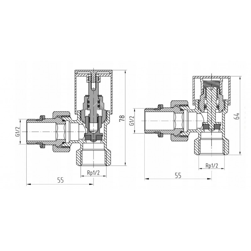 ZESTAW ZAWORÓW GRZEJNIKOWYCH KĄTOWY CHROM PREMIUM