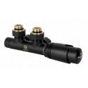 Zestaw termostatyczny zespolony to nowoczesne i wysoce efektywne rozwiązanie, które umożliwia łatwe podłączenie grzejnika do instalacji grzewczej oraz precyzyjne dostosowanie temperatury w pomieszczeniu. Prezentowany model wyróżnia się nie tylko doskonałą jakością wykonania, ale także eleganckim wykończeniem w głębokim kolorze czarnym.Zestaw obejmuje specjalne adaptery, umożliwiające bezproblemowe połączenie z rurami PEX o średnicy 16 mm lub miedzianymi o średnicy 15 mm. Ta uniwersalność sprawia, że zestaw doskonale sprawdza się w różnych konfiguracjach instalacyjnych, dostosowując się do indywidualnych potrzeb użytkowników.